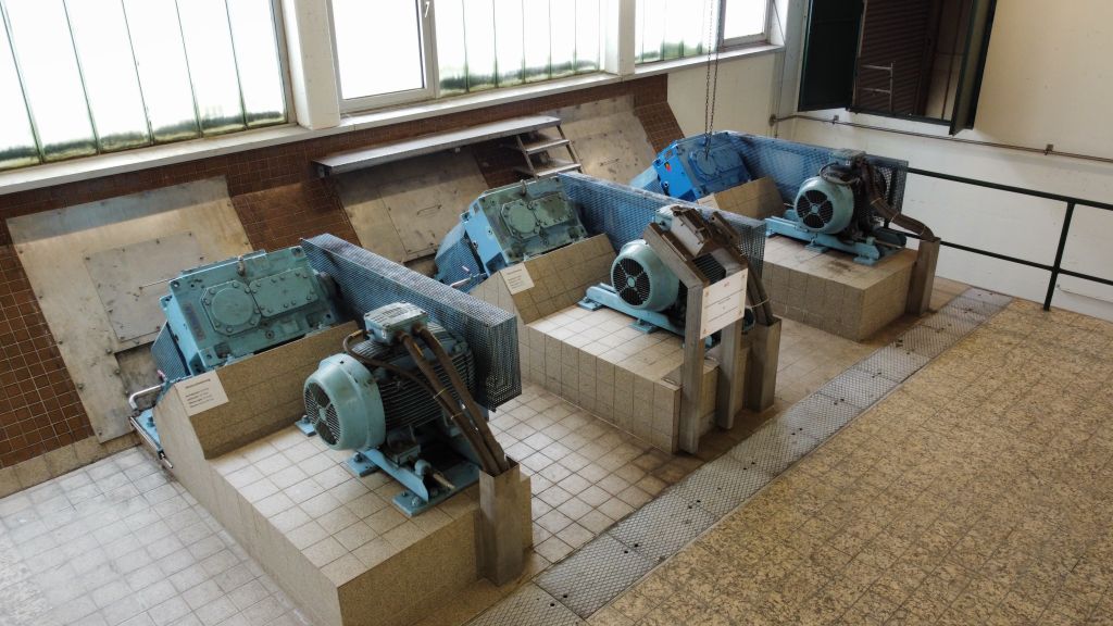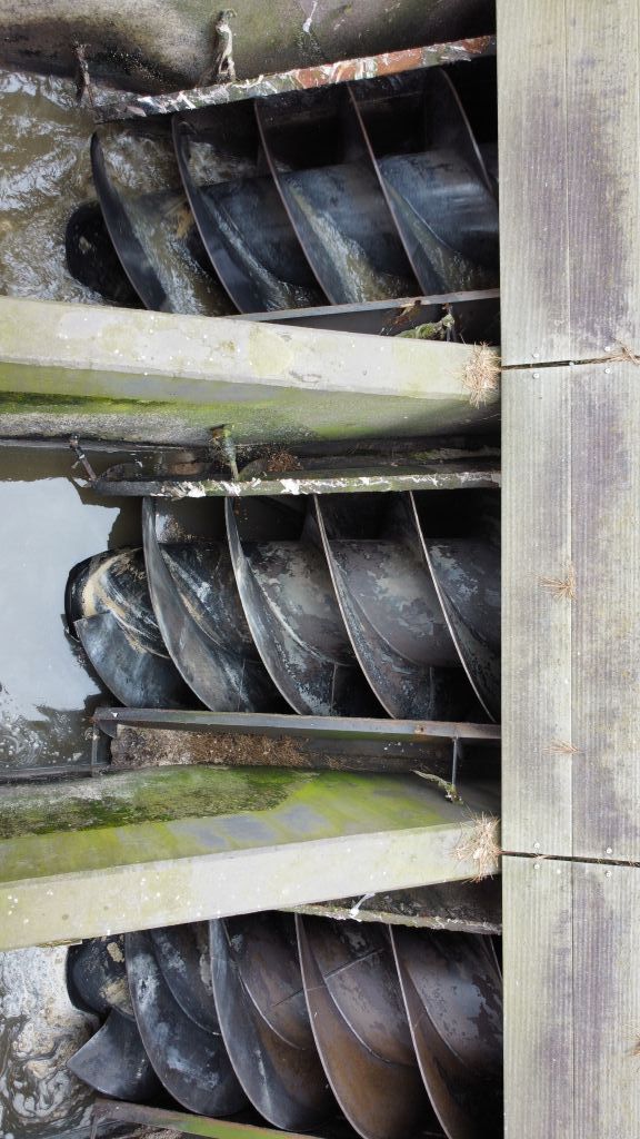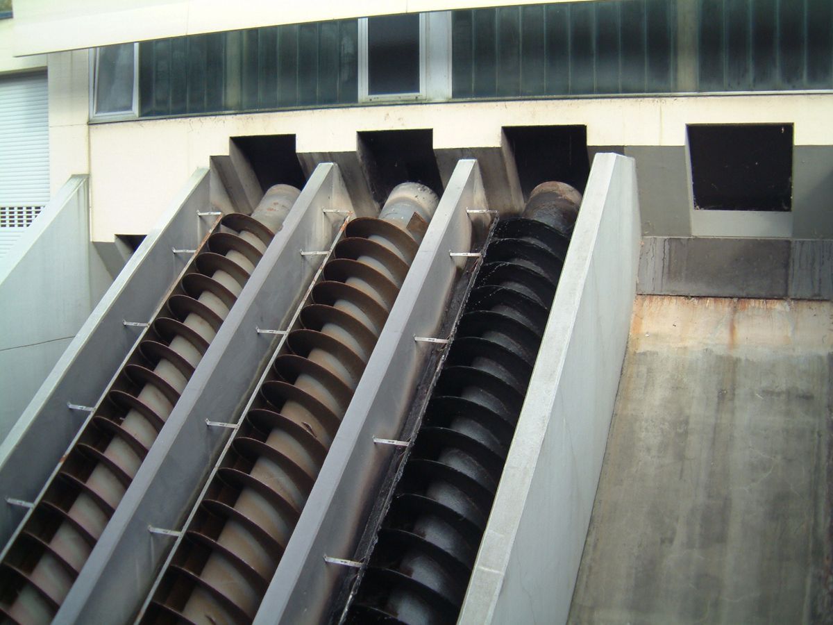 Das Zulaufhebewerk besteht aus 3 Schneckenpumpen mit einer Förderhöhe von 4,8m und einer Fördermenge von insgesamt 1500l/s. Angetrieben werden sie von je einem Elektromotor mit einer Leistung von 60kW. Das Hebewerk beruht auf dem Prinzip der Archimedischen Schraube